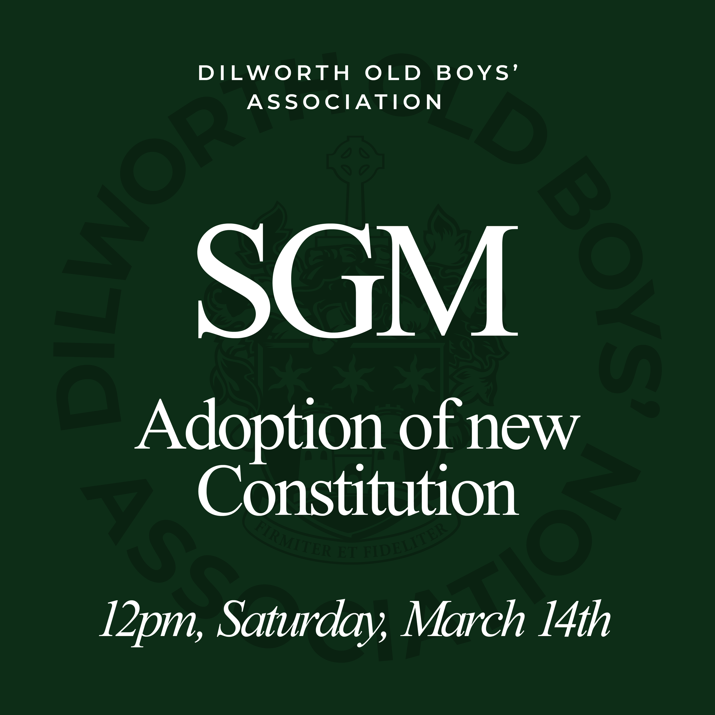 Immediately following this year’s AGM, on Saturday the 14th of March at the Dilworth Junior Campus, we will be holding a Special General Meeting of DOBA to vote on ratifying the new constitution.